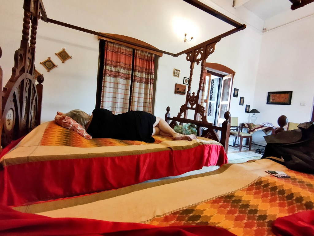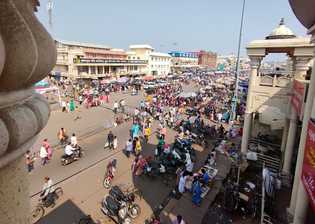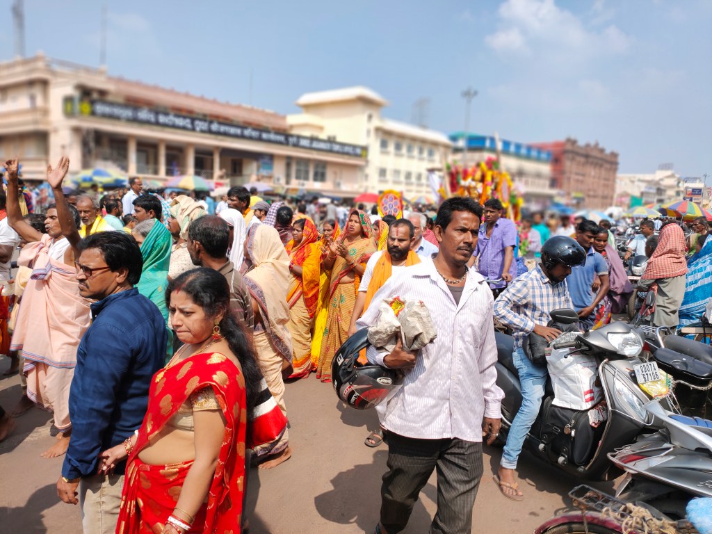 Sie kommen jedes Jahr nach Puri, sie machen eine Pilgerfahrt und bleiben einen Monat, lauter alte Frauen. Gegen 1000 schlafen einem einzigen, grossen Raum, mit minimstem Komfort, eigentlich ohne allen Komfort. Der Geruch in dem industriellen, schmucklosen Betonblock ist streng. Aber sie haben ihren Glauben und der Aufenthalt in Puri ist ihnen höchst wertvoll. Am nächsten Tag werden sie wieder in ihre Heimatorte zurückkehren. Der Abschied sei jedes Mal mit viel Tränen verbunden, sagt Bubu.
